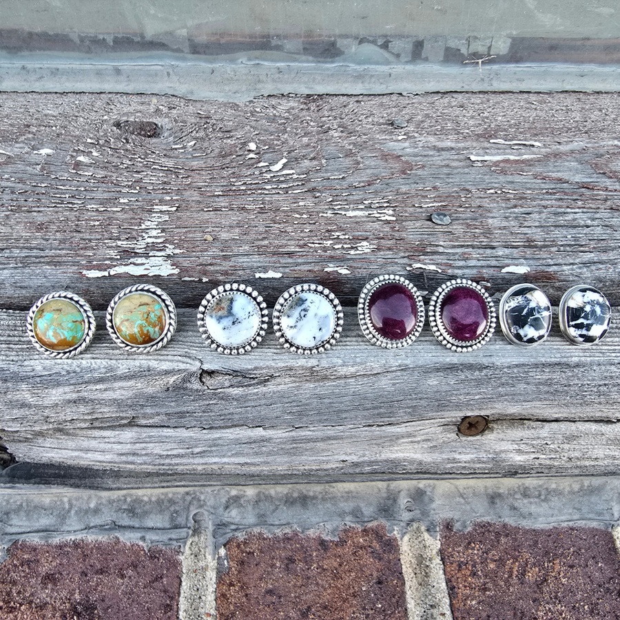 Stunning, deep purple colored Spiny Oyster earrings! The stones are set in fine silver and feature a sterling silver border. The earrings have sterling silver posts. They are stamped with my makers mark and are stamped sterling.